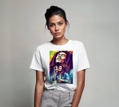 Questo ritratto di Bob Marley in stile WPAP cattura il suo look iconico utilizzando angoli audaci e colori vivaci. La sua espressione rilassata e i suoi caratteristici dreadlocks sono resi con contrasti netti, dando un senso di movimento e di vita. Lo sfondo si ispira a motivi astratti di ispirazione reggae, rendendo il disegno vibrante e fresco. Il disegno unisce perfettamente lo status leggendario di Marley con uno stile artistico contemporaneo.