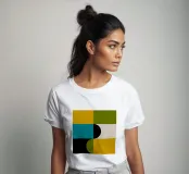 Ispirata all'estetica moderna del Bauhaus e della metà del secolo scorso, questa opera d'arte presenta audaci blocchi geometrici in giallo, verde, blu, nero e bianco sporco. Le sue linee pulite e i forti contrasti catturano l'armonia senza tempo del design modernista.