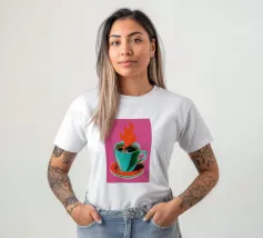 Una tazza blu brillante si staglia con forza contro il vibrante arancione, circondata da insegne al neon che sembrano un mantra indecifrabile sulla caffeina. Qui la pop art incontra l'energia della street art: aree chiare di colore, contrasti accesi, ritmo pulsante. Le scritte criptiche evocano la velocità, l'ondata di pensieri, il risveglio caotico dopo il primo sorso. Quest'opera non è una tranquilla natura morta, ma un forte espresso visivo: elettrizzante, urbano, zeitgeisty, risvegliante e trendy nel senso migliore del termine.