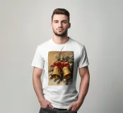 Una natura morta festosa che cattura in modo meraviglioso la gioia del Natale: Due campanelle dorate con fiocchi rossi brillanti pendono da rami di abete coperti di neve. L'illuminazione calda e la pennellata fine conferiscono al dipinto un'atmosfera nostalgica e pacifica. Questo motivo ricorda la magia delle classiche celebrazioni natalizie, piene di fascino, armonia e bellezza invernale.