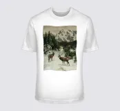 Un suggestivo motivo invernale: tre cervi si ergono maestosi in un paesaggio montano innevato, con abeti e cime sullo sfondo. I colori naturali e l'atmosfera tranquilla rendono questo disegno perfetto per gli amanti della natura e degli animali. Che si tratti di un murale, di un cuscino, di una tazza o di un poster, questo motivo porta il romanticismo invernale della fauna selvatica, l'eleganza e la tranquillità in ogni casa.