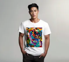 Esseri fantasiosi ed elementi fantastici si uniscono in una composizione vibrante. Questo dipinto invita gli spettatori a esplorare un mondo magico dove la creatività non conosce limiti.