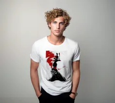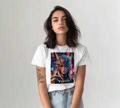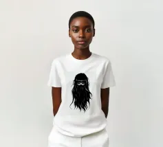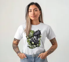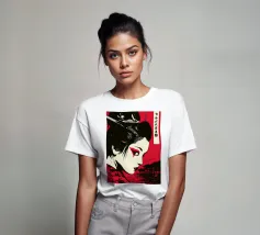 Una misteriosa demonessa con una benda e seducenti labbra rosse domina questa composizione oscuramente erotica. L'estetica grunge ricorda i manifesti punk degli anni '80, mentre la scritta "Spooky" in rosso sangue rafforza l'atmosfera di Halloween. I contrasti in bianco e nero con accenti rossi mirati creano una tensione drammatica. Questo provocatorio mix di gotico e street art trasforma la moda in dichiarazioni ribelli, perfette per chiunque ami il lato oscuro!