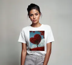 Un escavatore giallo è posizionato accanto a una benna rossa piena di oggetti a forma di cuore, che simboleggiano l'amore. L'ambientazione è caratterizzata da un terreno soffice, che aggiunge un tocco unico al tema di San Valentino.