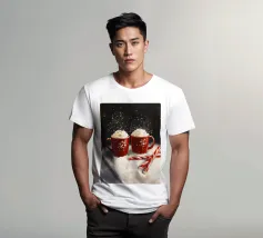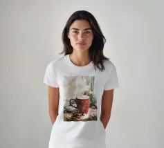 Un'illustrazione spiritosa, deliziosa e golosa di una tazza piena di cioccolata calda e panna montata. Il testo dice: "Non voglio innamorarmi, voglio innamorarmi della cioccolata".