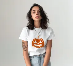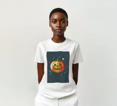 Accoglienti vibrazioni autunnali e di Halloween con questo motivo di Halloween ispirato al cottage core. Una zucca allegra e sgraziata disegnata in uno stile da cartone animato adatto ai bambini.