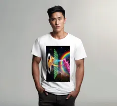Questa opera d'arte surreale ritrae due figure vestite che camminano mano nella mano attraverso un antico arco di pietra verso un cielo luminoso dalle tonalità rosa e viola. Sopra di loro fluttua un radioso occhio geometrico, che simboleggia la consapevolezza, il mistero e la comprensione più profonda. La miscela di architettura storica, colori tenui del tramonto e iconografia simbolica crea una scena ricca di significato e immaginazione. Ideale per gli amanti dell'arte spirituale, della narrazione surreale e delle decorazioni murali che stimolano la curiosità e la riflessione.