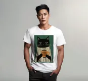 Gatto nero beve caffè
