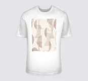 Il disegno presenta un'accattivante disposizione di cerchi, rettangoli e forme astratte di foglie sovrapposte, che alludono sottilmente a forme organiche all'interno della struttura. La texture granulosa aggiunge profondità e interesse visivo.
