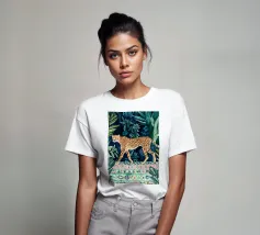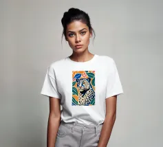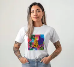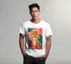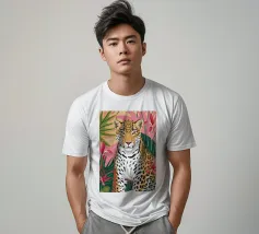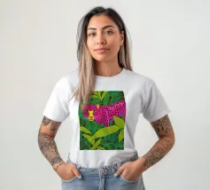 Questo non è un normale safari. È un'avventura rosa ambientata in una lussureggiante foresta tropicale, dove gatti, tigri, leopardi, zebre, giaguari e ghepardi vivacizzano le decorazioni murali con un tocco pop-art. In questo quadro dalle linee raffinate, un ghepardo rosa acceso si adagia tra il fogliame verdeggiante, lasciando che la sua tonalità vivace sia al centro della scena. Le foglie tropicali creano un contrasto sorprendente, rendendo questo pezzo un'attrazione immediata per il salotto o lo studio creativo.