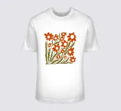 Una gioiosa esplosione di energia vintage: i vivaci fiori arancioni e le foglie verdi catturano l'atmosfera libera degli anni '60. Questo design floreale vivace dona un tocco retrò e un'atmosfera da metà del secolo scorso a qualsiasi interno moderno.