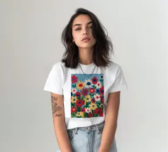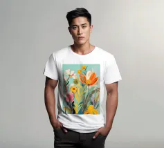 Questa illustrazione floreale dai toni caldi irradia la freschezza della primavera e l'arrivo di giornate più calde. Ispirata ai fiori di campo, offre un'atmosfera allegra e vivace, con toni morbidi di rosso, arancio e giallo, che ricordano il primo risveglio della natura.