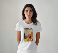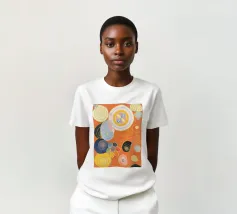 Questa vivace stampa d'arte presenta "The Ten Largest (No.3), Youth" di Hilma af Klint, un'ipnotica opera astratta del 1907. Su un caldo sfondo arancione, la composizione è un ricco arazzo di spirali vorticose, cerchi concentrici e forme organiche in una variegata tavolozza di gialli, blu, rosa e viola. Quest'opera mostra la visione spirituale e astratta pionieristica di Klint, che esplora i temi della crescita e dello sviluppo attraverso un intricato simbolismo. Questo poster digitale di alta qualità (7000x5000 pixel, 300 dpi) cattura magnificamente la bellezza eterea e la maestria innovativa dell'opera di Klint.