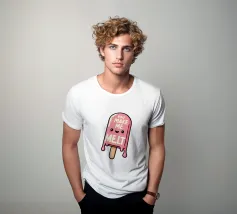 Due simpatici corndog, con tanto di sorrisi alla senape e al ketchup, sono allegramente in piedi l'uno accanto all'altro con la frase "Mi piace quando sei sdolcinato". Il design giocoso trasmette un messaggio umoristico e leggero.