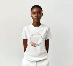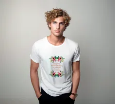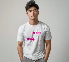 Un messaggio scherzoso: "Non sono basso, sono un tipo divertente". La frase è accentuata da una composizione floreale decorativa sopra la parola "Short", che aggiunge un tocco affascinante.