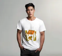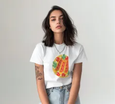 Tre salsicce sorridenti si trovano su una griglia con fiamme sotto di loro, circondate dalla frase "It could be wurst". Il design giocoso mescola l'umorismo con il tema culinario.