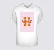 Un'opera d'arte tipografica semplice ma decisa, con la frase "It Is What It Is". Con linee pulite e un layout equilibrato, questo disegno cattura la calma accettazione del flusso della vita.