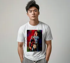 "Michael Jackson con la testa inclinata all'indietro e le braccia aperte, con indosso una camicia bianca, illuminato da un riflettore su uno sfondo scuro, con sopra il testo 'Ma that Change', che cattura un momento di performance e ispirazione",