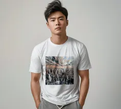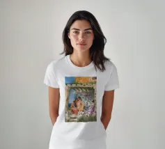 "Manhattan View" è un collage digitale che fonde la fotografia contemporanea con la grandiosità della pittura neoclassica. In quest'opera, diverse belle donne dell'epoca sono ritratte in cima a un grattacielo, affascinate dalla vista abbagliante di tutta Manhattan. I loro gesti e le loro espressioni interagiscono armoniosamente con l'ambiente urbano, evocando l'eleganza e l'eccitazione di un'epoca passata e celebrando al contempo la bellezza e il dinamismo della città moderna."