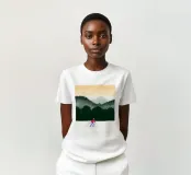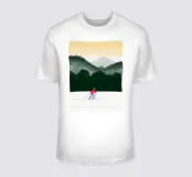 Un tranquillo momento invernale dall'eleganza minimalista: una singola persona scivola sugli sci attraverso un paesaggio innevato, mentre sullo sfondo colline verdi e un cielo morbido e dorato garantiscono calma ed equilibrio. Questo disegno cattura la bellezza pacifica di una limpida mattina d'inverno - minimalista, armonioso e moderno. Perfetto per gli amanti delle scene tranquille e dell'estetica nordica.