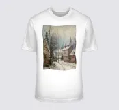 Una pittoresca mattina d'inverno in un tranquillo villaggio: le case coperte di neve, gli alberi slanciati e le lontane guglie delle chiese si stagliano dolcemente nella luce bluastra. Il sentiero tra la neve conduce l'occhio attraverso il tranquillo scenario ed evoca ricordi di tranquille giornate invernali. Il dipinto unisce nostalgia, tranquillità e bellezza naturale in colori armoniosi e pennellate raffinate.
