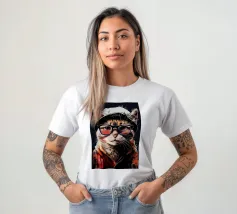 Un gatto cartoon con gli occhiali siede alla scrivania con un computer portatile, circondato da una tazza di caffè fumante e da fogli. Il testo recita ironicamente: "Nessuna delle vostre e-mail mi trova bene", evidenziando l'espressione scontenta del felino.