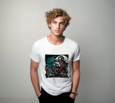 Scatenatevi sul surf con questo fantastico skeleton rider! Questo disegno raffigura uno scheletro che sfreccia con stile su un'onda colorata. È un mix perfetto di cultura balneare e un tocco di macabro. Prendete questo design radicale per la vostra prossima avventura in spiaggia (o semplicemente per avere un aspetto cool).