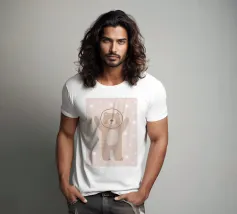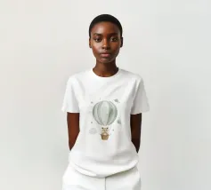 Questo simpatico motivo mostra un allegro orso che fluttua dolcemente nell'aria con un paracadute colorato. I tenui colori beige e pastello in combinazione con i motivi delicati e le nuvole minimaliste conferiscono a questa illustrazione un fascino senza tempo. Un disegno perfetto per gli amanti dei simpatici animali e degli scenari da sogno.Simpatico motivo con un orso fluttuante