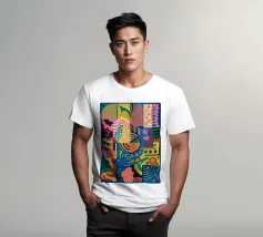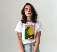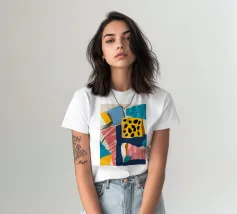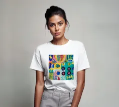 Una vibrante composizione astratta che ricorda una trapunta patchwork, con vari blocchi di colore, motivi geometrici e texture che creano un disegno vivace e tattile.