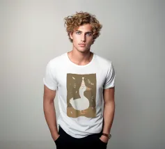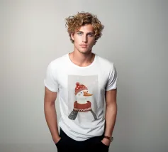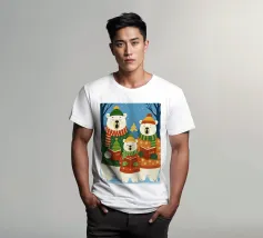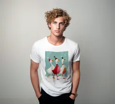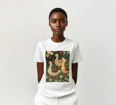 Questa festosa opera d'arte natalizia raffigura quattro giocose oche che indossano cappelli e sciarpe a maglia colorate e che danzano gioiosamente insieme in una foresta innevata di pini. Dipinto a mano in morbido acquerello, cattura lo spirito allegro degli animali del bosco in inverno. Perfetto per tessuti, carte da parati e accoglienti progetti stagionali, questo affascinante disegno aggiunge calore vintage e stravaganza alle tradizioni natalizie. Create da Uta Naumann, le oche portano la magia e l'allegria nostalgica delle feste, rendendole una scelta deliziosa per le celebrazioni festive, l'artigianato invernale e le decorazioni ispirate al bosco.
