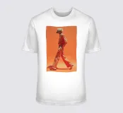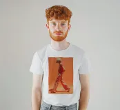 Un ritratto surreale ed elegante di un cane che attraversa con sicurezza la scena in un abito monocromatico arancione. Con occhiali da sole retrò e una silhouette audace, questa opera d'arte antropomorfa fonde la fotografia di alta moda con una giocosa assurdità.