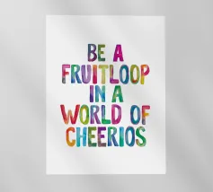 Aggiungete un tocco di bizzarria al vostro spazio con questa affascinante stampa tipografica. La giocosa frase "Be a Fruitloop In a World of Cheerios" prende vita in una vivace scritta acquerellata arcobaleno dipinta a mano, su un nitido sfondo bianco. Questo pezzo accattivante è un delizioso promemoria per abbracciare la propria unicità e distinguersi dalla massa. Perfetta per ravvivare qualsiasi ambiente, dalla cameretta dei bambini all'ufficio di casa, questa coloratissima opera d'arte susciterà sicuramente gioia e conversazione. Lasciate che questa stampa allegra vi ispiri a celebrare la vostra individualità ogni giorno.