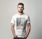 Un dipinto invernale pieno di tranquillità e di atmosfera: una singola figura si aggira per il sentiero innevato verso un'antica casa di montagna, circondata da maestosi abeti e da una leggera foschia montana. Le delicate tonalità di blu e la luce tenue conferiscono al quadro un'atmosfera pacifica e malinconica. Un omaggio alla solitudine e alla bellezza delle giornate invernali innevate.
