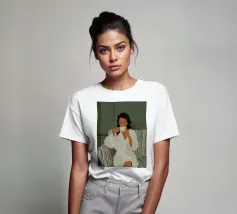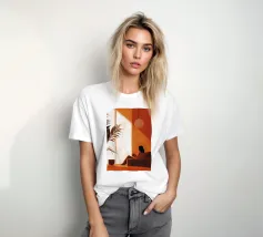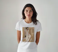Mescolando toni di metà secolo e grazia moderna, questo pezzo esplora l'intersezione tra forma e solitudine. La palette di colori tenui e la geometria audace riecheggiano la presenza tranquilla della donna, creando una composizione che sembra un jazz visivo, sofisticato e senza sforzo.