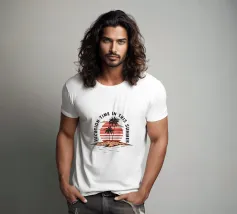 Siete pronti per una vacanza e avete voglia di sole, mare e spiaggia. Allora questo motivo con alba, palme, cocktail rinfrescanti, ananas fresco e conchiglie è proprio quello che fa per voi. Detto umoristico per l'estate. Concedetevi più spiaggia e preoccupatevi di meno.