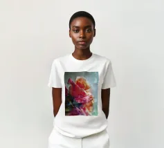 Questa vibrante arte digitale astratta combina colori brillanti e texture glitterate ispirate a motivi botanici. Le strisce orizzontali in rosa, arancione, viola e verde donano nuova energia a qualsiasi spazio abitativo e celebrano la bellezza della natura colorata.