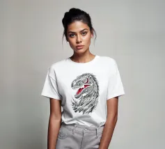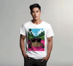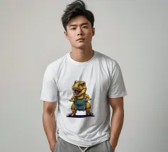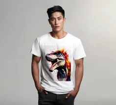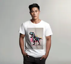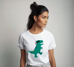 Questo vibrante T-Rex sfoggia un paio di eleganti occhiali da sole, che fondono la forza preistorica con la modernità. Un pezzo audace e divertente per gli amanti dei dinosauri e dell'arte tagliente.
