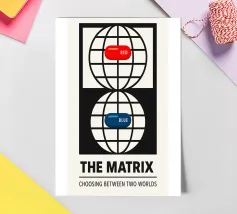 Stampa di Matrix, Poster cinematografico alternativo, Arte murale minimale, b&n, Pillola rossa, Pillola blu, Due mondi, Matrix, Griglia, Distopia, Regalo per i fan del cinema