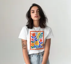 Questo poster porta la bellezza della natura sulla vostra parete in una forma stilizzata: una composizione armoniosa di fiori e foglie in un motivo simmetrico, ispirato allo stile dell'arte popolare moderna. Linee chiare, colori decisi e un'attenta cura dei dettagli fanno di quest'opera d'arte botanica un vero e proprio richiamo visivo, sia in salotto che in corridoio o in ufficio.