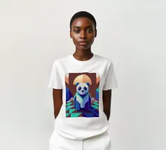 Panda colorato in stile collage di tendenza: un motivo allegro e moderno per progetti creativi, decorazioni, moda e idee regalo. Simpatico panda in un look collage stilizzato Aree di colore moderne e astratte e armoniose tonalità pastello Ideale per camere di bambini, decorazioni, articoli di moda e idee regalo Perfetto per poster, magliette, borse o articoli di cancelleria Attrazione simpatica e creativa per grandi e piccini