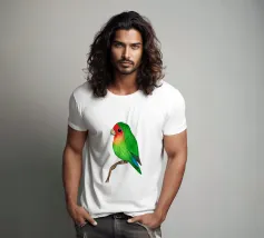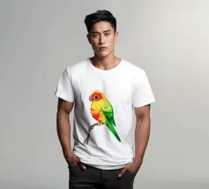 Illustrazione digitale di un simpatico inseparabile dalla faccia di pesca appollaiato su un bastone.