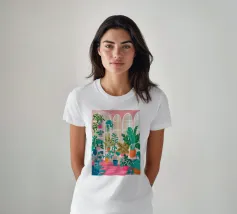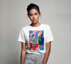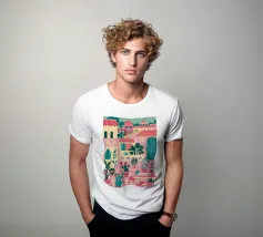 Questo disegno porta in casa vostra la gioia di vivere mediterranea e la leggerezza estiva. L'illustrazione colorata mostra un vivace patio pieno di piante fiorite e cactus in vasi eleganti, circondati da colori caldi e terrosi. L'aspetto moderno e disegnato a mano e l'armoniosa composizione cromatica di rosa, giallo, blu e verde rendono il motivo un richiamo visivo ideale per murales, tazze, cuscini e molto altro. Perfetto per gli amanti delle piante che desiderano portare la natura e il colore nei loro spazi abitativi. Un'attrazione per ogni casa o un regalo creativo.