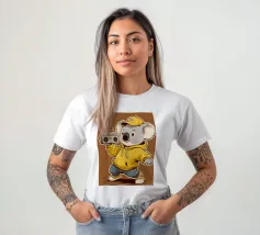Comica illustrazione di un koala che si gode gli effetti della sua solita pianta di eucalipto. In modo meno tradizionale.