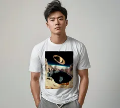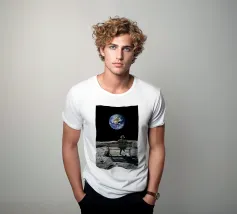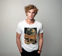 dove sei andato senza di me. ~ Una donna si trova da sola in un paesaggio simile a quello di Marte e guarda la Terra. vibrazioni retro futuristiche e toni terrosi