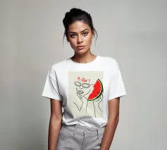 Il personaggio di un'anguria fresca indossa occhiali da sole e un cappello mentre pronuncia un gioco di parole con il testo "Sei un melone!" in bolle vocali.
