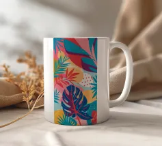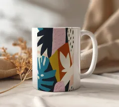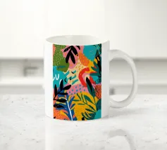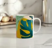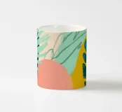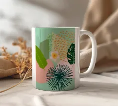 Una giocosa composizione astratta, ricca di audaci forme ispirate alla giungla e di pennellate vivaci. Questo disegno a mano combina verde acqua, blush, senape e menta in un layout gioioso e contemporaneo, perfetto per ravvivare gli interni moderni con un tocco tropicale.