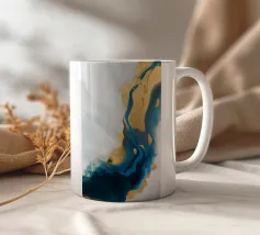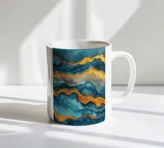 Un panorama mozzafiato, in cui la bellezza della costa viene catturata in un unico momento. Le onde di giada, ornate da accenti dorati, si infrangono contro la riva dorata, creando uno spettacolo ipnotico. Gli intricati disegni delle onde, come fili d'oro, tessono un arazzo di bellezza e tranquillità.