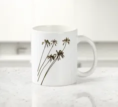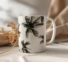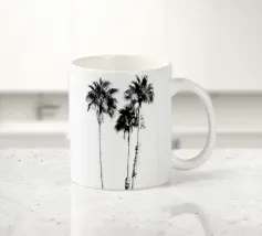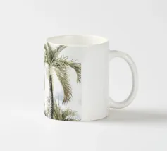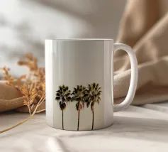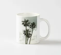 Lasciatevi trasportare dall'eleganza e dalla maestosità di queste palme imponenti. Mentre le loro cime formano un disegno circolare contro un cielo morbido e pastello, sentite la pace e la calma che offre la natura. Questa angolazione insolita non solo mette in risalto l'altezza degli alberi, ma anche la loro bellezza senza tempo.