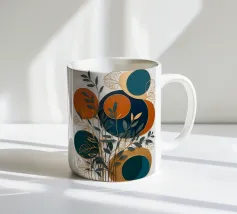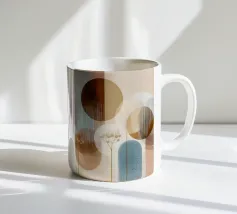 Un design astratto di grande impatto, caratterizzato da un armonioso gioco di forme circolari in oro metallizzato, blu profondo, pesca tenue e beige tenue. Questa composizione minimalista combina elementi geometrici audaci con delicate linee verticali, creando un senso di equilibrio ed eleganza. Le sottili texture e gli spruzzi d'oro aggiungono profondità e raffinatezza, rendendo questo pezzo un centro perfetto per gli interni moderni e contemporanei.