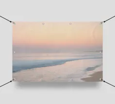 Questa tranquilla opera d'arte cattura un'alba mozzafiato su una spiaggia nebbiosa. Il cielo tenue e pastello e le onde delicate creano un'atmosfera rilassante e pacifica, perfetta per un arredamento ispirato al relax.